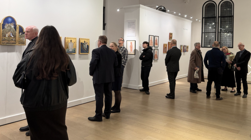 The exhibition, which opened December 15, is hosted by the King’s Foundation School of Traditional Arts, an institution dedicated to preserving traditional artistic practices. Melnychuck completed her studies there under master iconographer Aidan Hart.