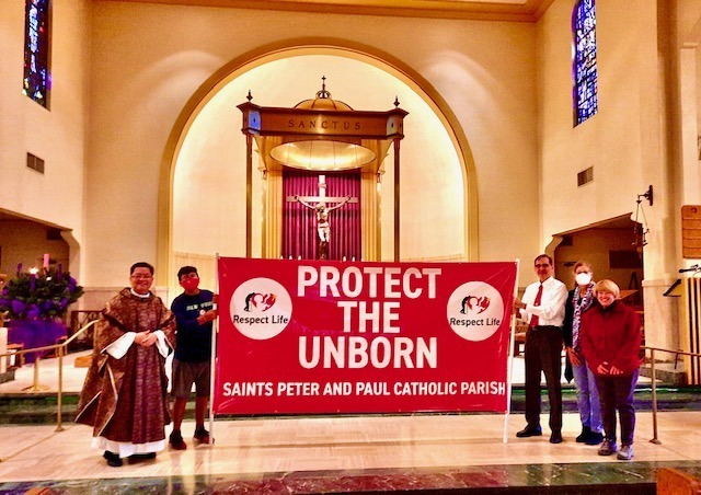 In November, the Respect Life ministry at SS. Peter & Paul Catholic Church joined a nationwide prayer on the eve of the US Supreme Court hearing on the Mississippi case hearing in November. The ministry unfurled and blessed their Pro-life banner at mass. The stood outside of the church several times to support life after the court hearing.