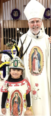 perated beautifully. Not every year has it been such a lovely evening. I remember once it was cold, damp and rainy, not very pleasant. Hundreds of people show up for the procession beginning from a local park to St. Joseph Church. The procession includes a number of sacred floats with images of Our Lady of Guadalupe carried by parishioners. During the Mass, parishioners reenact the story of the appearance of Our Lady to Juan Diego. It is such a familiar story but to see it reenacted is very moving.