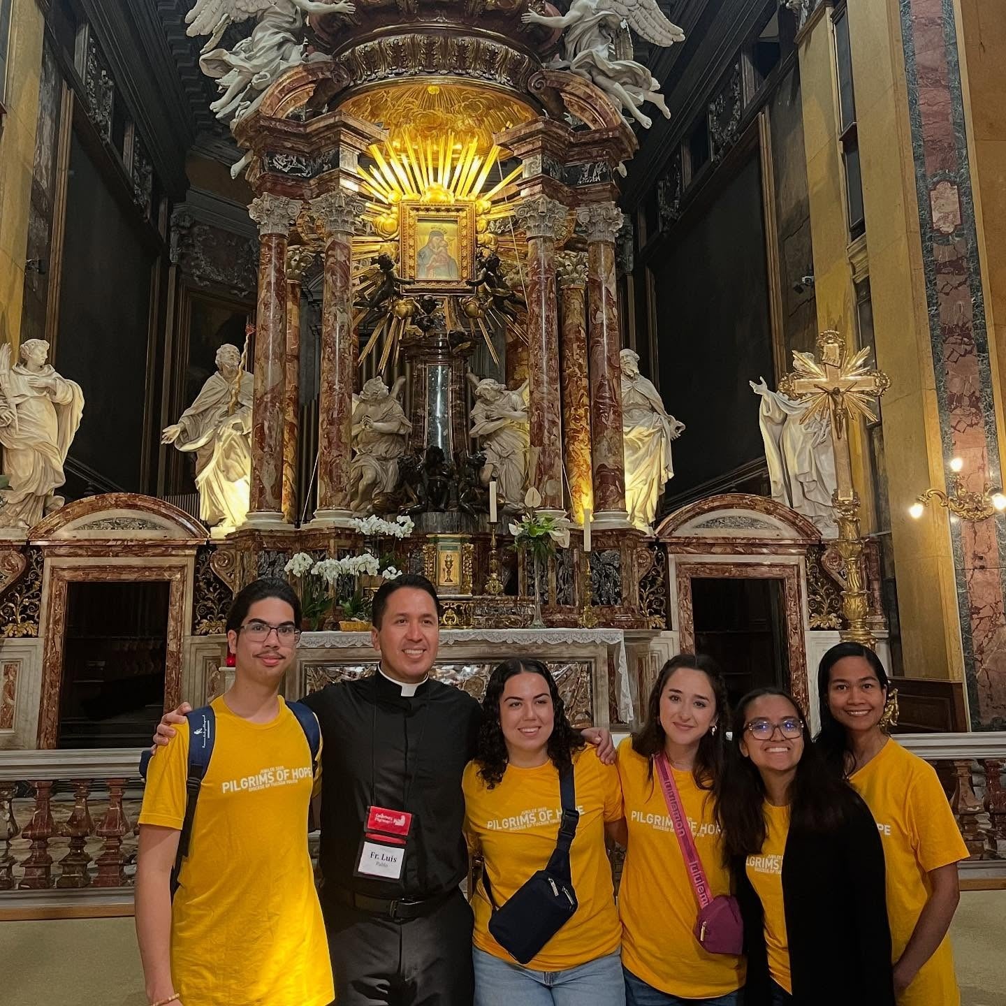 The group learned of the pope’s passing minutes after landing in Rome. Father Manu Franco, a Carmelite, and the Director of Youth Ministry for the diocese, said group prayed for the repose of Pope Francis’ soul while at baggage claim. Though the trip changed course, it was, nonetheless, memorable, “These students are going to be testaments of hope. They were not expecting to be there for a funeral. Being there this week they had this realization that the Church is big, it’s real, and it has a long history.” The group was able to attend Pope Francis’ viewing and his funeral, “We saw his body. We were yards away. I was able to pray before being told to move,” he said. Father Manu and Reverend Luis Pablo Ochoa-Escárrega, the Associate Director of Vocations at Immaculate Conception Church in Yuma, sat with concelebrants in Vatican Plaza in front of the altar, while the others were outside a Carmelite church, “It was impressive and very well organized. There were large screens and drones flying above us. One minute you saw the drone flying above you and then the image was on the screen.”